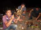 广西桂林市灵川县灵田大村的一伙青少年在河边烧烤场景。